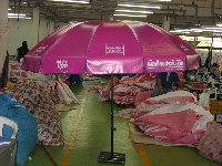 ร่มแม่ค้าทรงกลม 12 ก้าน มีชายในตัวนำ้หนัก 8.45 กก รวมแกนล่าง เส้นผ่าศูนย์กลาง 231 ซม ขณะกาง ความสุงขณะกาง265ซม