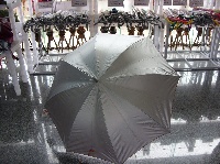 ร่มสปริง ขนาด 22"X 8 ก้าน ผ้าไนล่อนเคลือบซิลเวอร์ลาย สวิชแบบถ้วย
